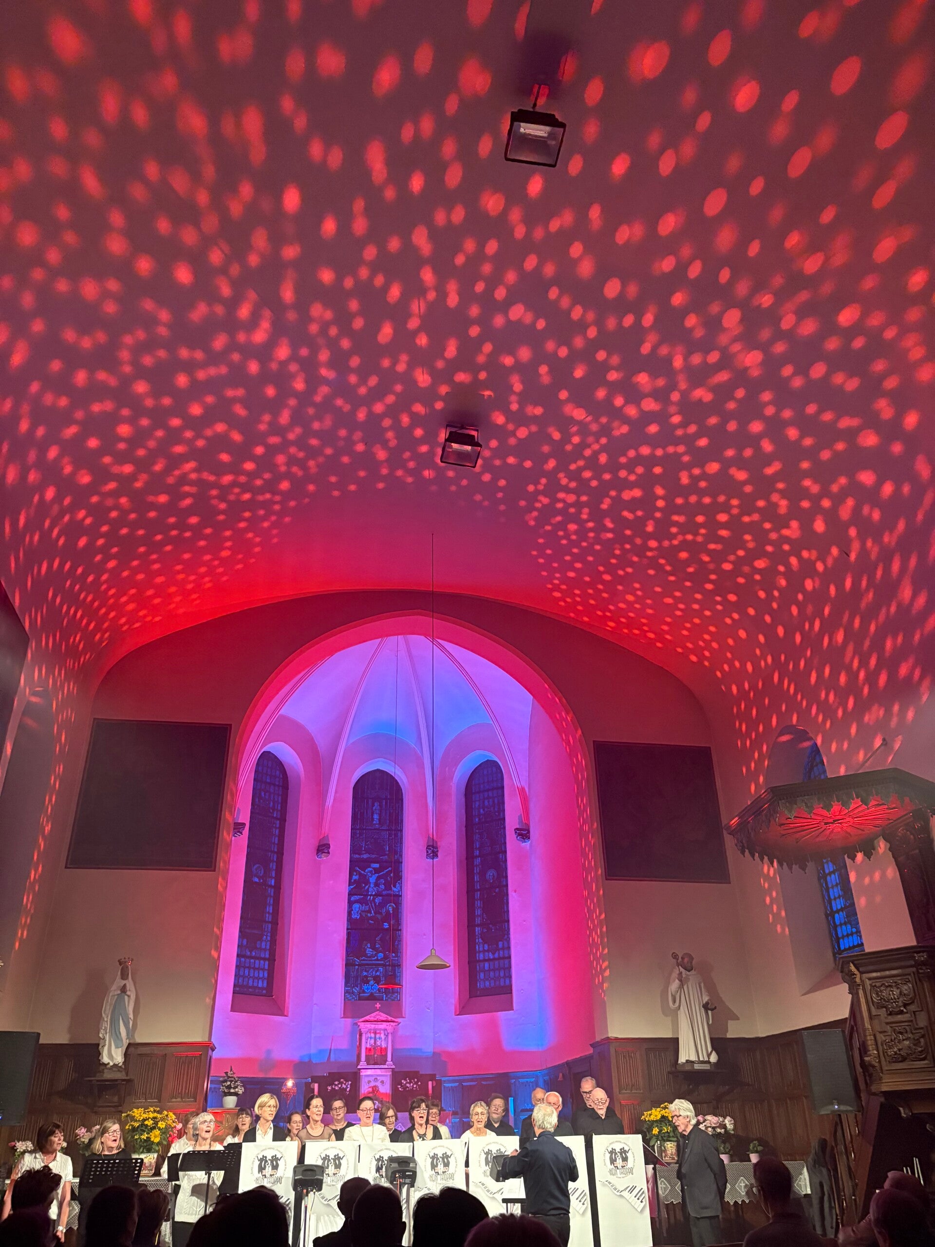 Anderhalf uur genieten van mooie muziek, een fantastisch zangkoor, een vermakelijke dirigent, mooie verlichting, waren zo voorbij tot verbijstering van het publiek. Een bisnummertje kon niet uitblijven.